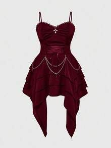 Goth Abito da donna con catena in metallo vintage, stile gotico, con cintura in vita staccabile e orlo asimmetrico, taglie comode
