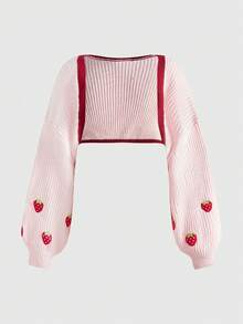 Kawaii Cardigan corto a maniche lunghe in maglia vintage kawaii e carino con stampa fragola, adatto per autunno/inverno, taglie comode