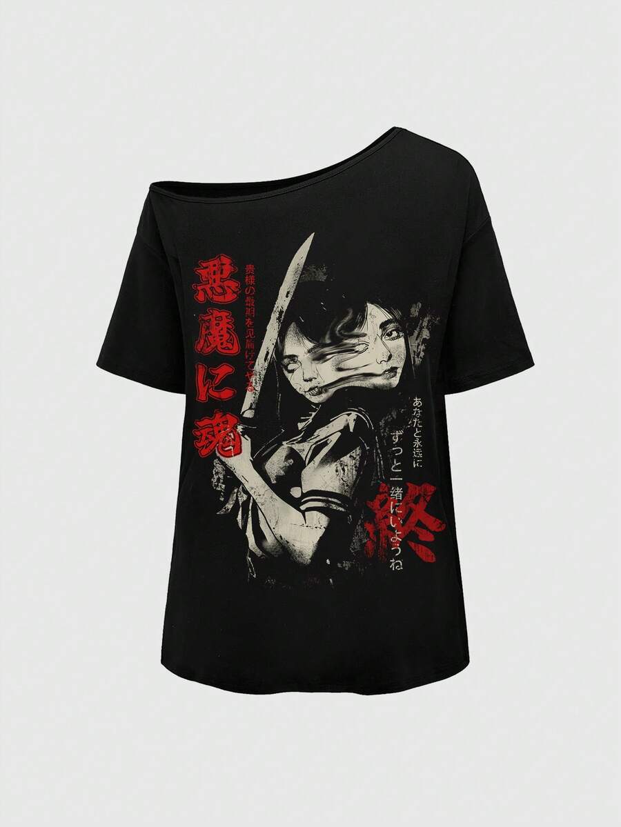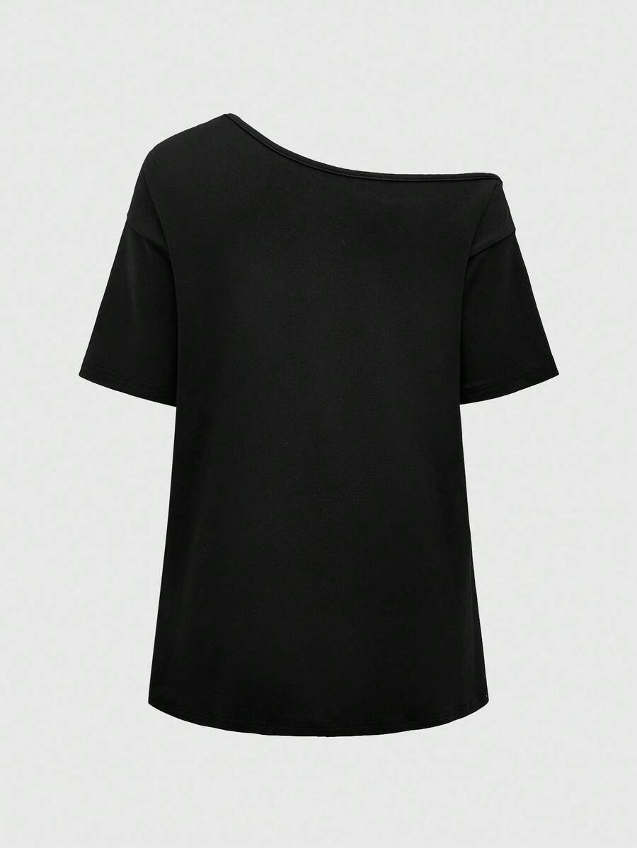 Grunge Punk Maglietta nera tinta unita con spalla asimmetrica, stile vintage e sexy, adatta per l'estate, taglie comode