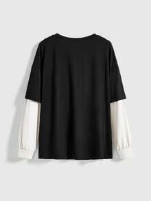 Grunge Punk Maglietta casual a girocollo a maniche lunghe da donna Plus Size, primavera-estate, con stampa di lettere e ali
