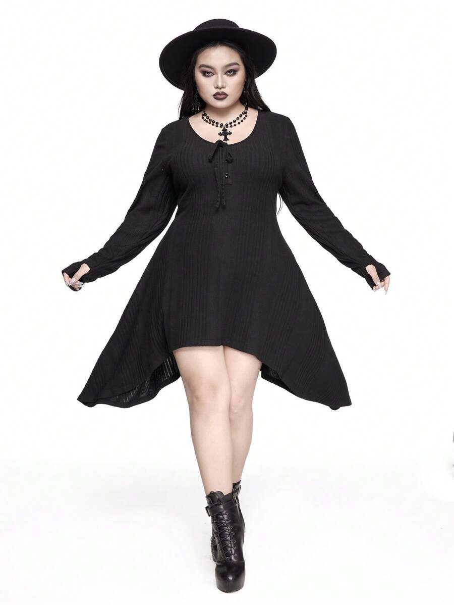 Goth Abito da donna taglie forti con orlo asimmetrico e allacciatura frontale in pizzo, versatile per varie occasioni, adatto per il passaggio autunno/inverno, Ognissanti