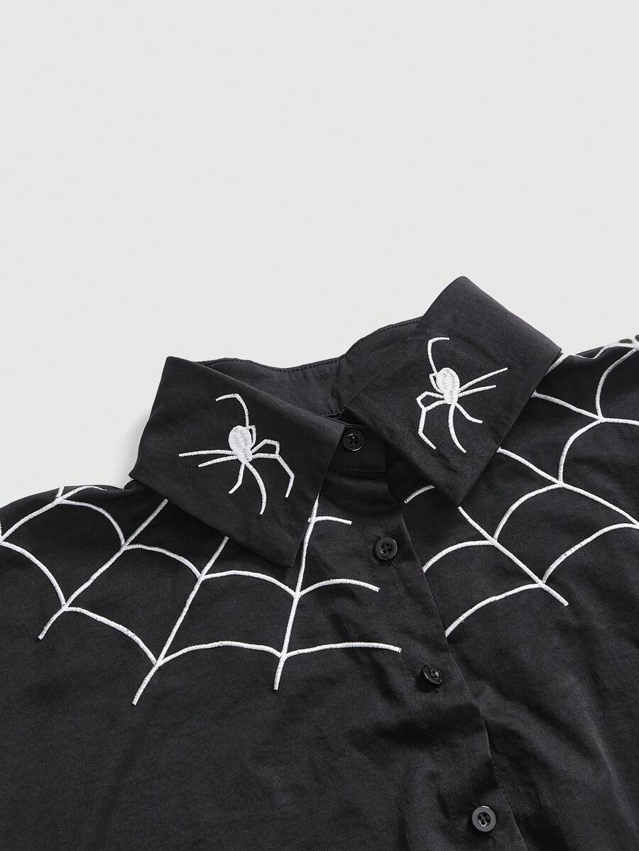 Goth Abito da donna taglie forti con ricamo a ragnatela gotico, vita stretta con tasche, adatto per Ognissanti