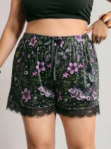 Fairycore Pantaloncini in velluto con vita elastica e bordo in pizzo, adatti anche come shorts intimi, disponibili in taglie forti
