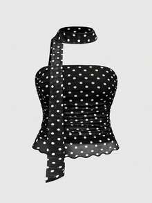 J-Fashion Blusa donna taglie forti con stampa a pois, decorata con volant e laccetti frontali