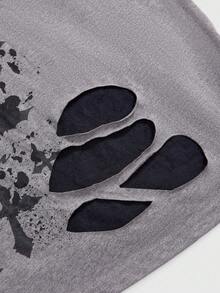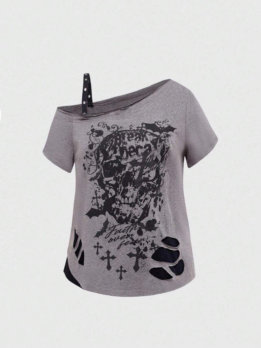 Grunge Punk Maglietta oversize da donna con stampa punk a teschio e croce, con occhielli e orlo asimmetrico