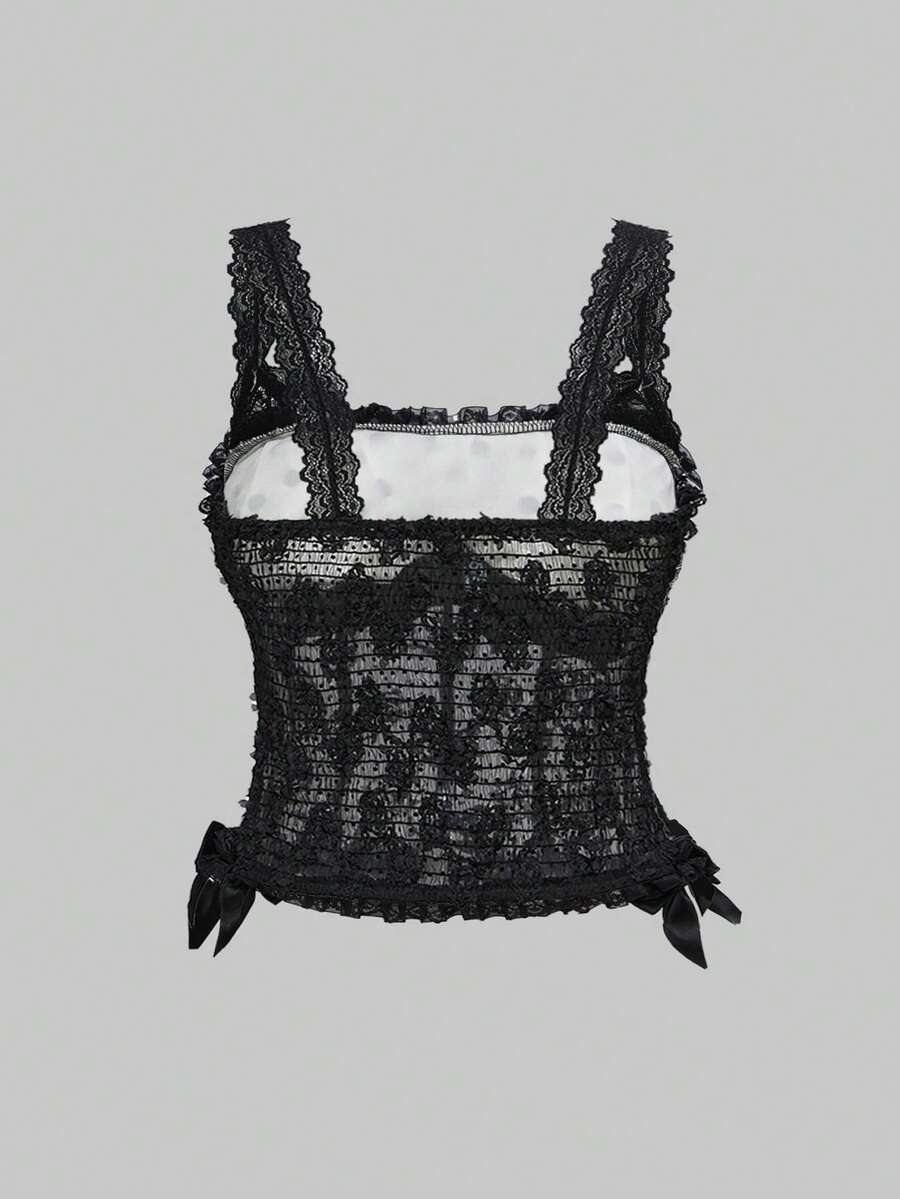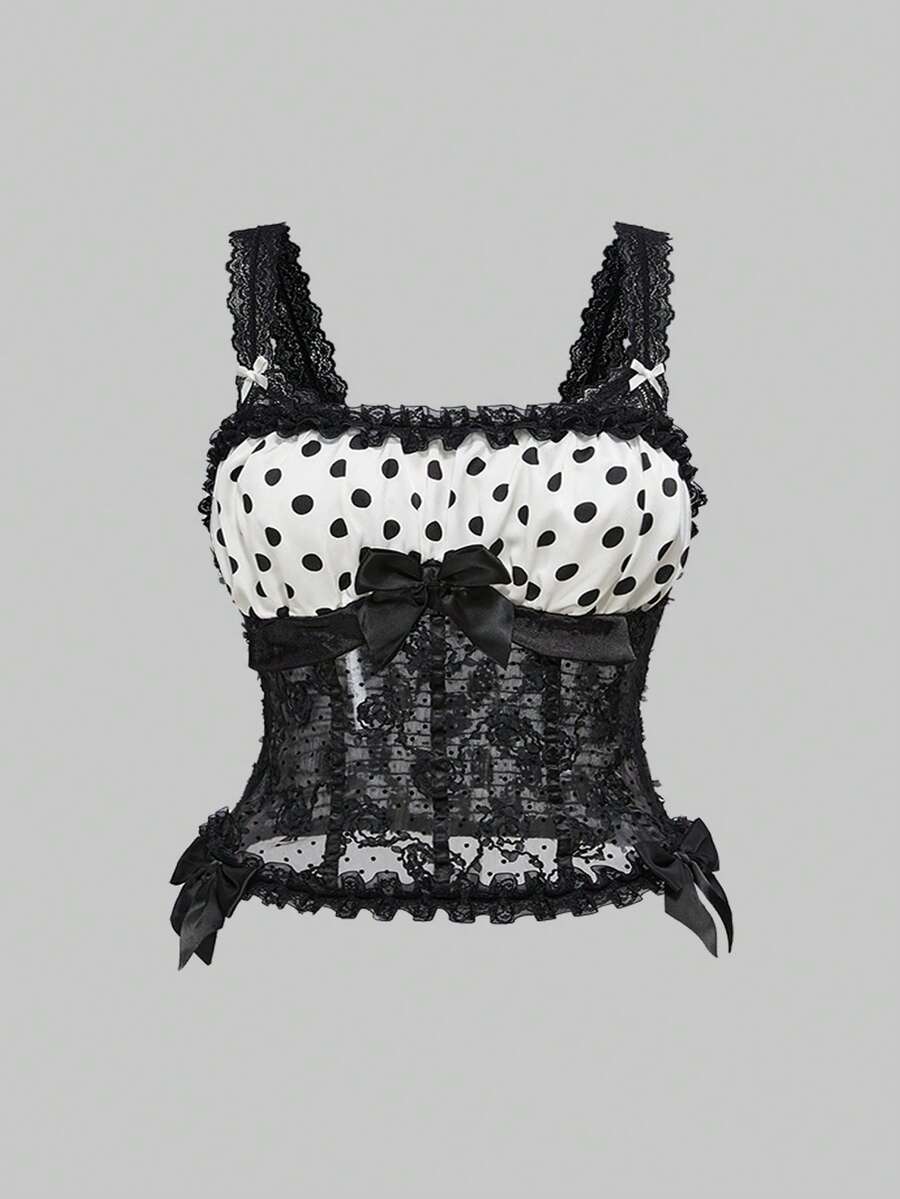 Grunge Punk Completo di due pezzi in stile Y2K, per donne taglie forti, con pois a contrasto e pizzo