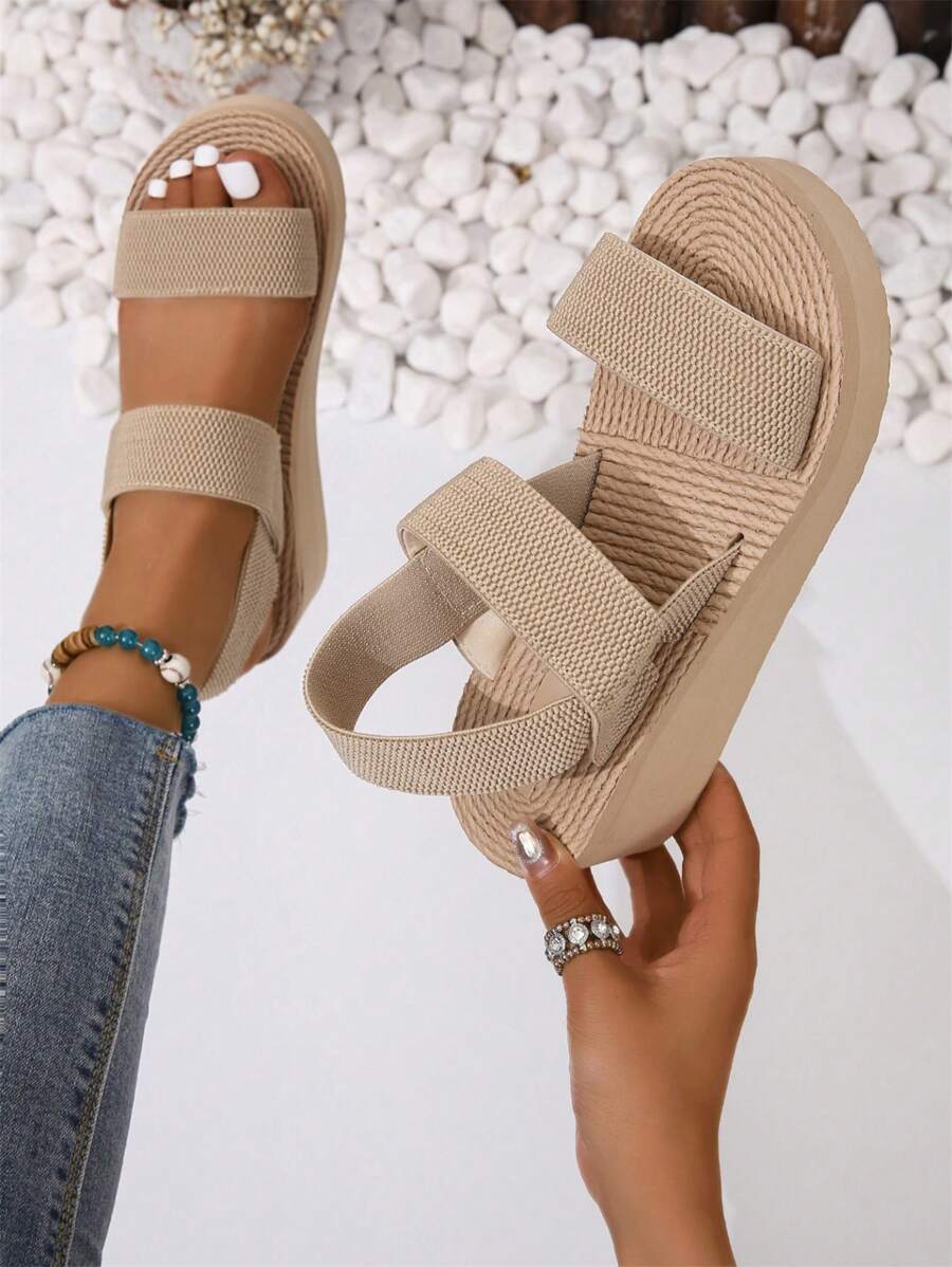 Sandali Da Piattaforma Chic Di Design Per Donne Taglie Forti Con Tomaia Morbida E Punta Aperta, Adatti Ai Piedi Larghi