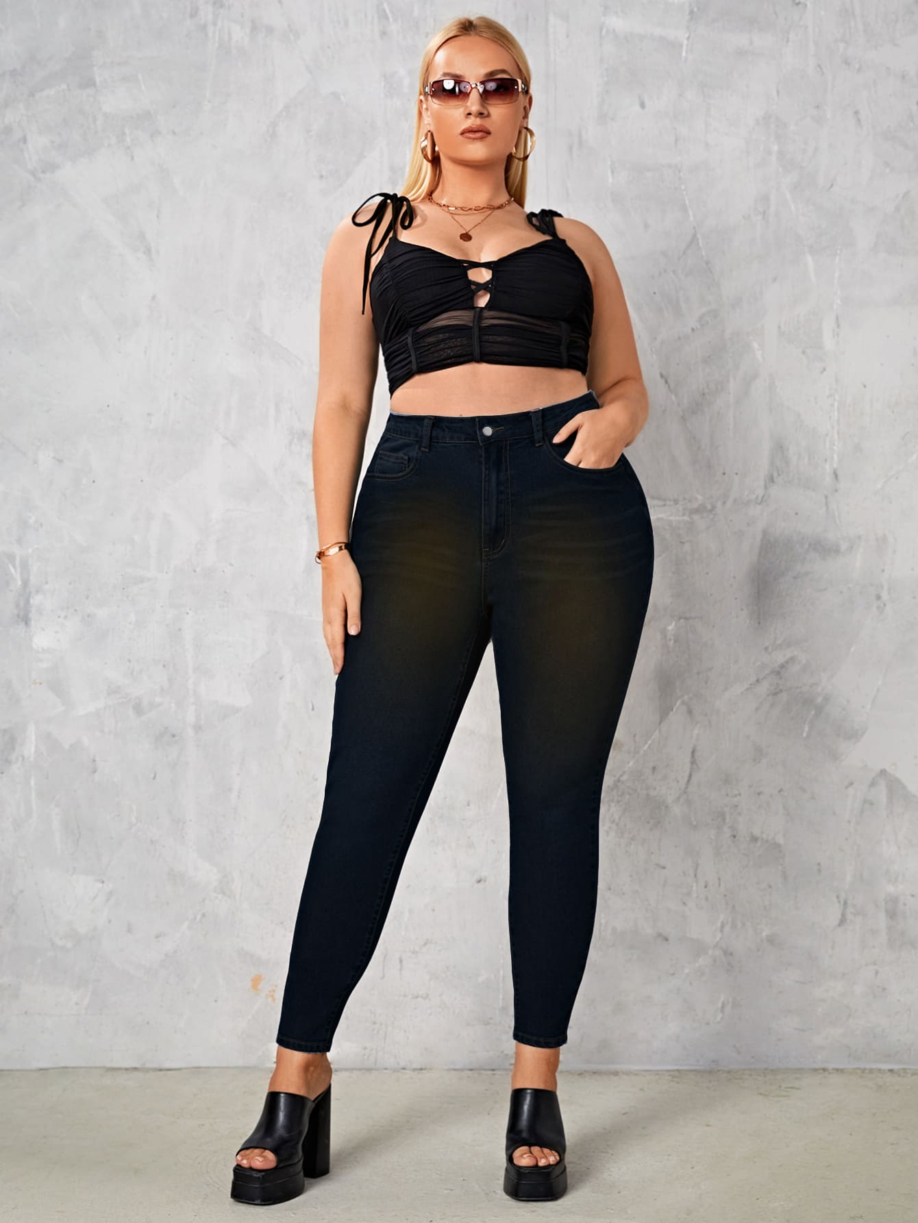 taglie forti Jeans skinny tasche oblique