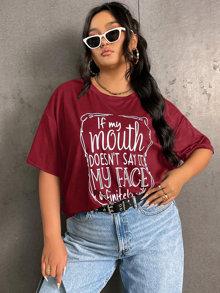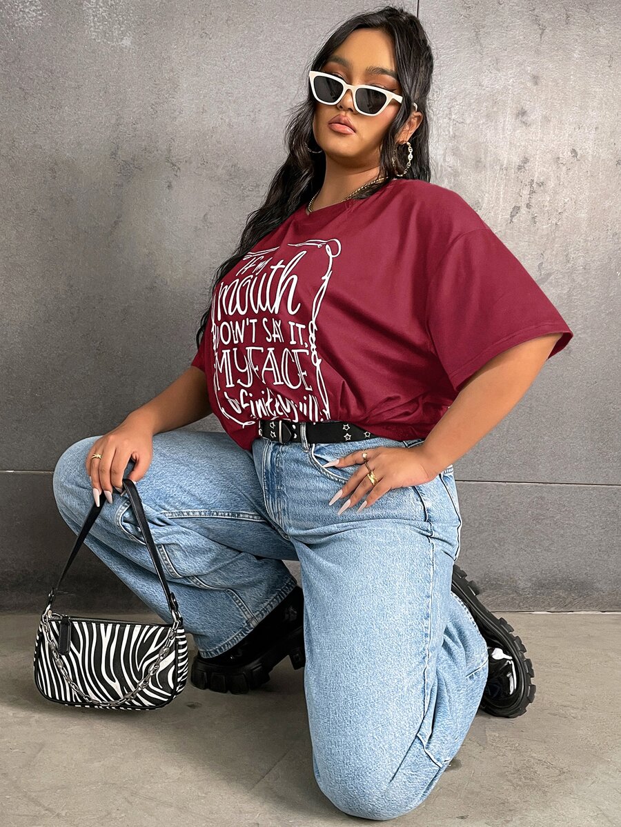 Maglietta con spalla cadenti con slogan grafico taglie forti