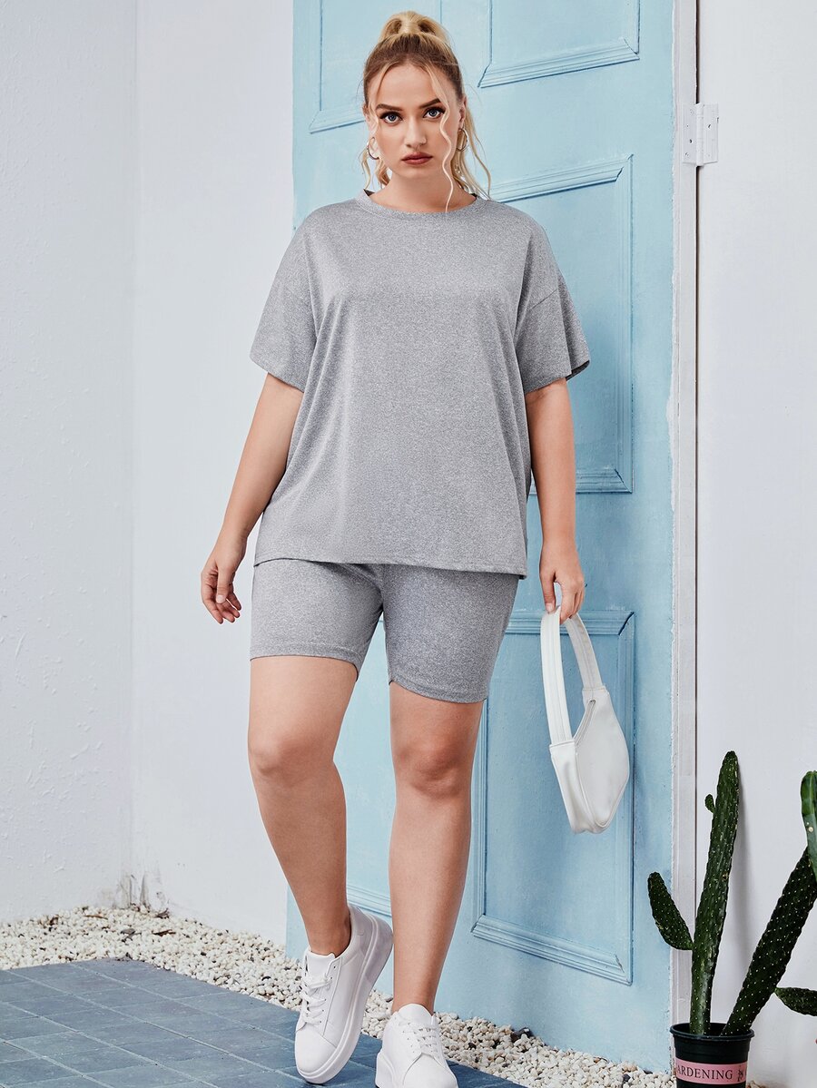 Maglietta monocolore con spalle cadenti con shorts