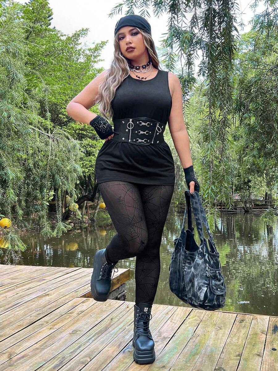 Taglie Forti Leggings con stampa ragnatela inserto in rete senza mutandine