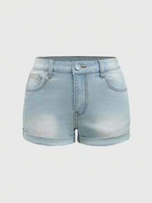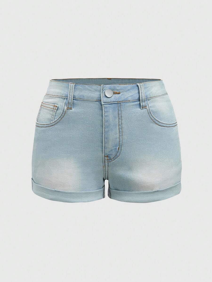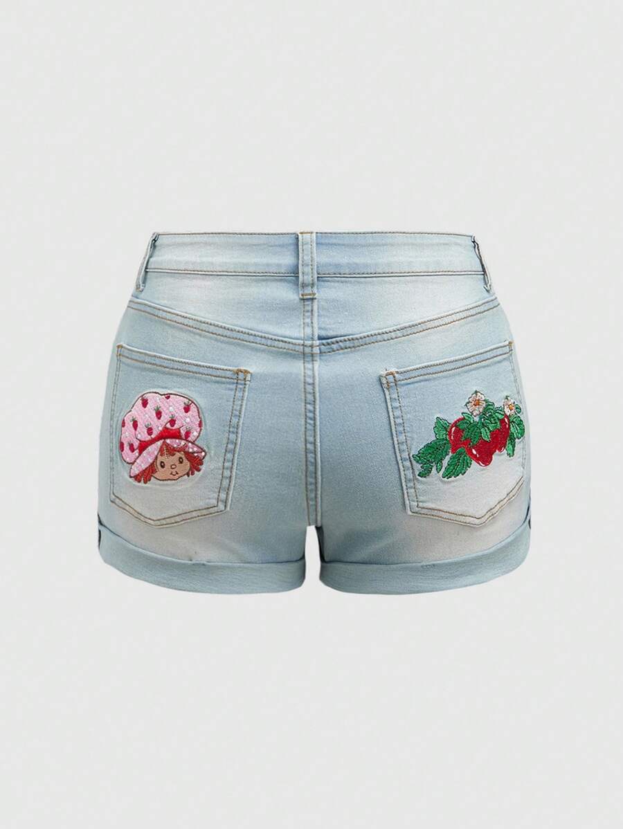 Pantaloncini di jeans graziosi con ricamo a fragola, taglie comode