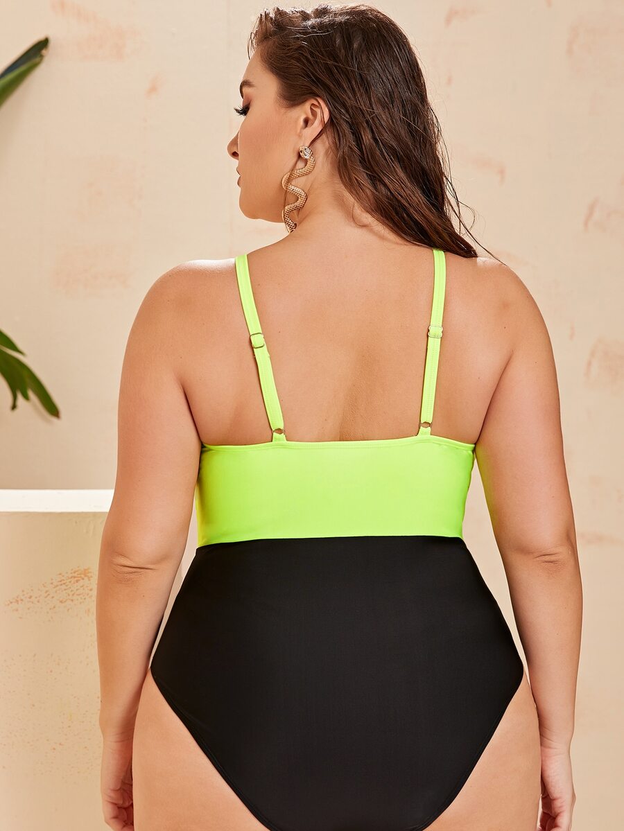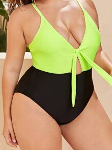 Costume da bagno bicolore con nodo taglie forti