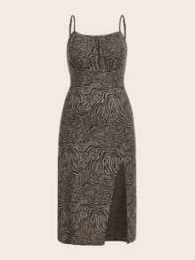 taglie forti a righe zebra a fessura alta Abito con bretelle sottile senza a rete Top