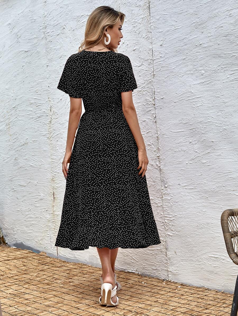Abito a trapezio incrociato a pois con nodo laterale