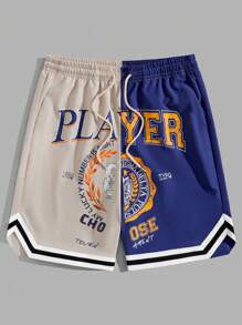 Prep Ragazzi Shorts con grafica lettera bicolore con coulisse a vita