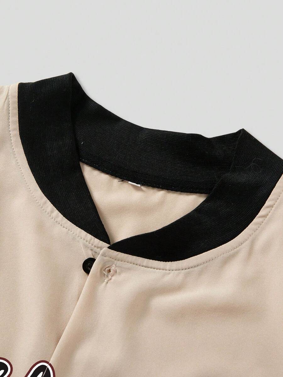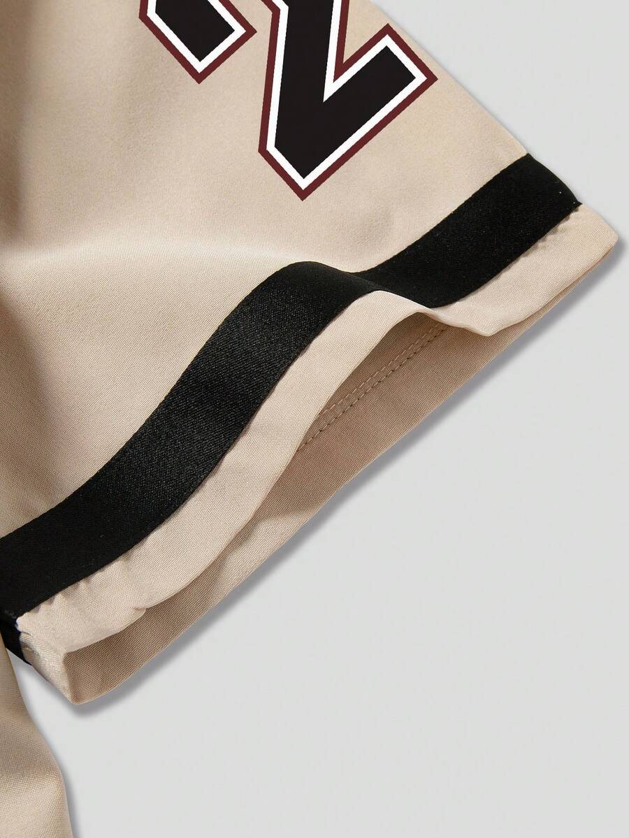 Prep Camicia a bottoni sul collo con scritta, stile baseball, per uomo, adatta per la scuola
