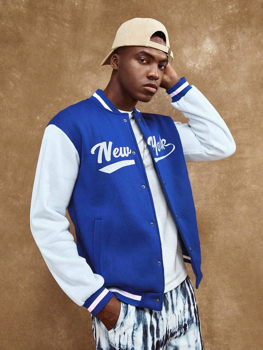 Prep Uomo Giacca Varsity Con Grafica A Lettere E Blocchi Di Colore