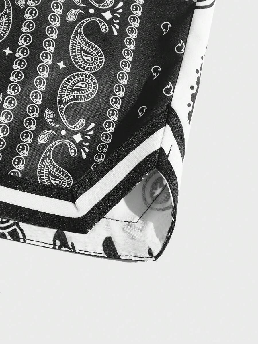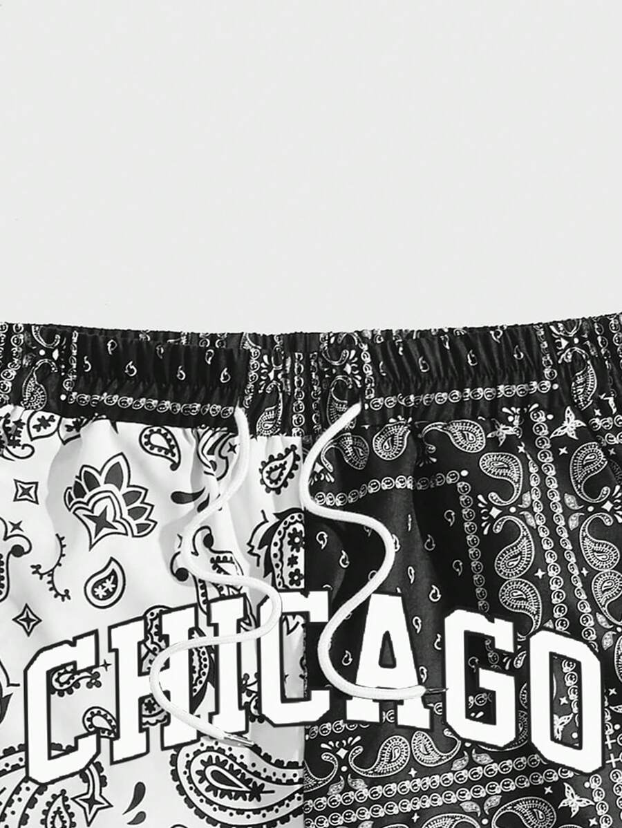 Prep Pantaloncini da basket con stampa a strisce, paesaggio e lettera, coulisse in vita, per scuola
