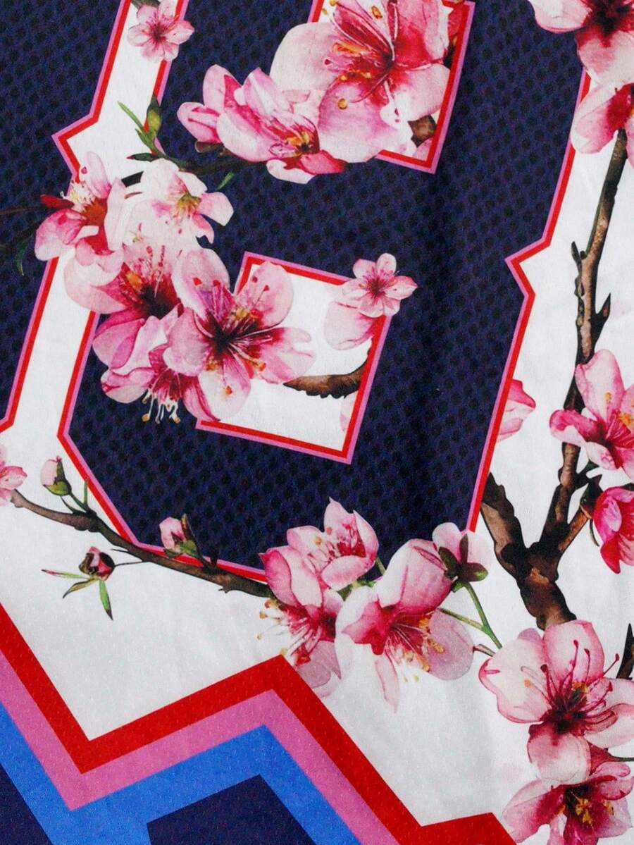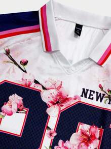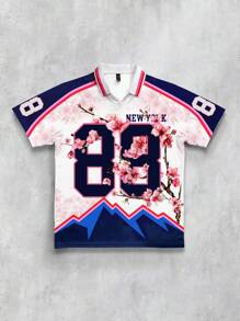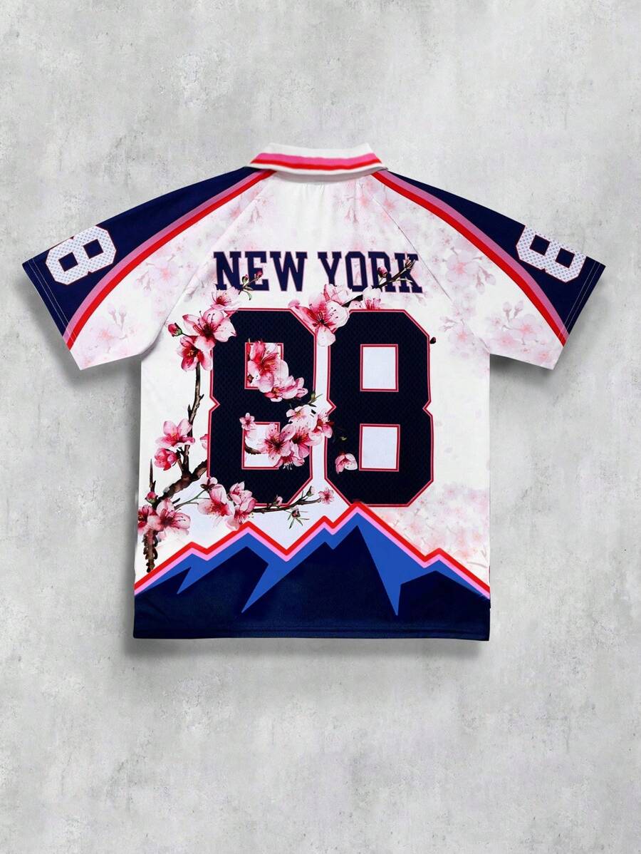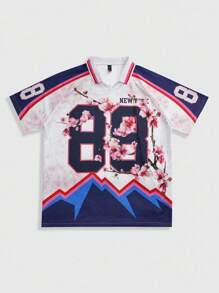 Prep Maglietta casual da uomo con colletto alla coreana, maniche corte e stampa, camicia polo