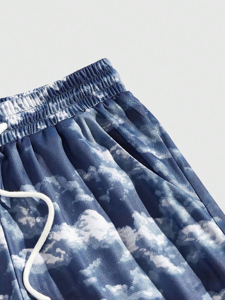 Prep Pantaloncini casual da uomo con vita con coulisse, stampa lettere celesti, stile casual, stile calcio, scolastico