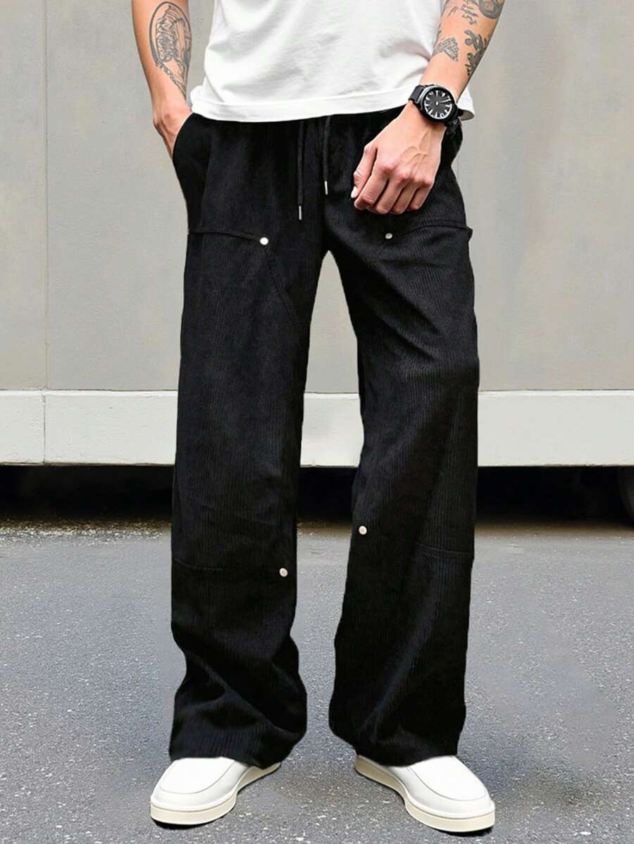 Prep Pantaloni casual in velluto a coste da uomo, gamba dritta e ampia, adatti per la primavera e l'autunno