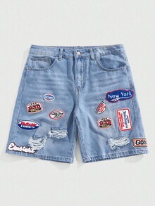 Prep Pantaloncini di jeans casual alla moda strappati da uomo