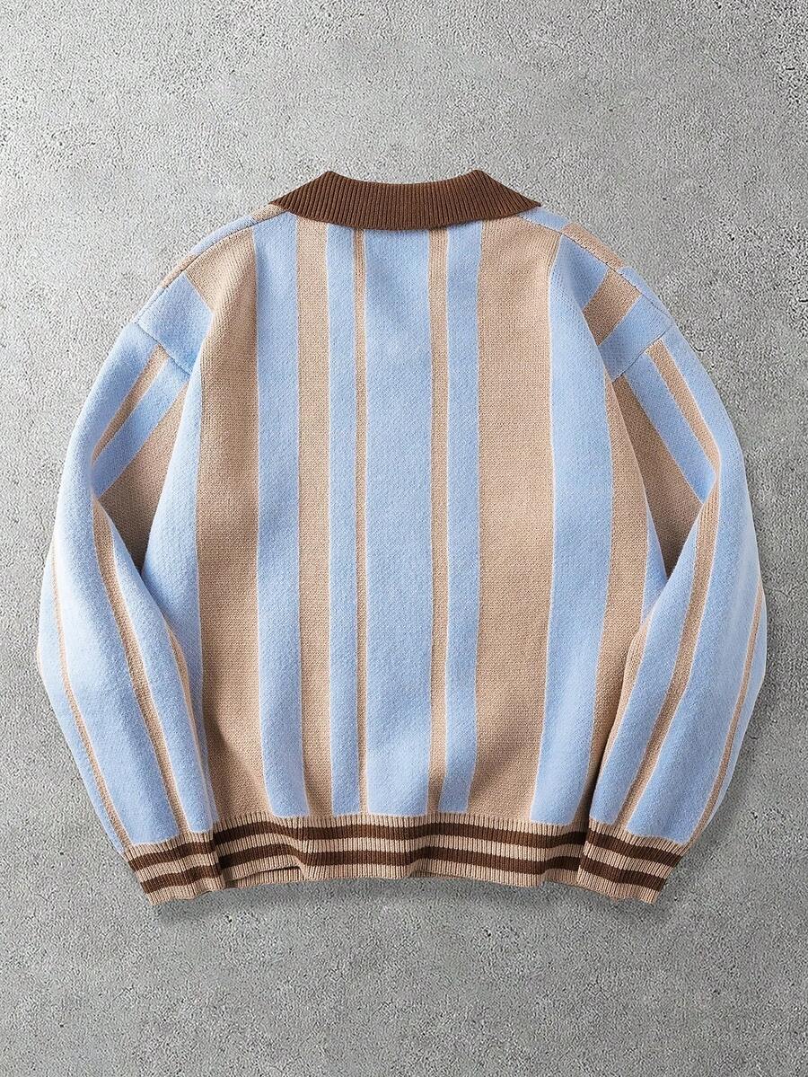 Prep Maglione casual oversize da uomo con ricamo a lettere e righe in jacquard