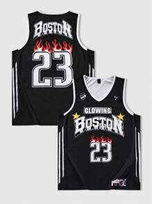 Prep Canotta da basket sportiva da uomo con scollo a V e stampa di lettere