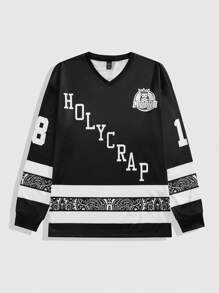 Prep Maglietta casual sportiva a maniche lunghe con scollo a V e stampa di slogan, da uomo