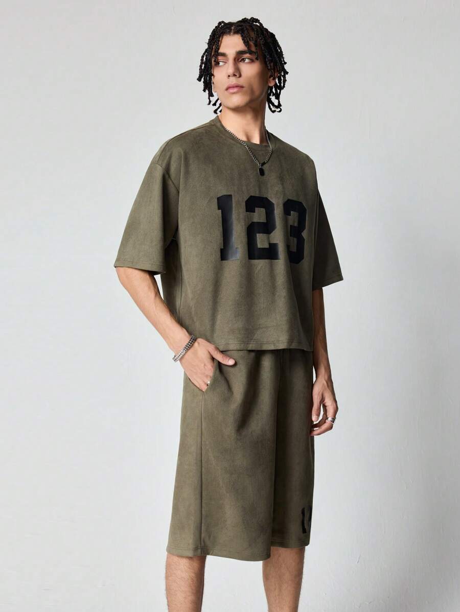 Prep Set casual da uomo con Maglietta con stampa numerica e pantaloncini