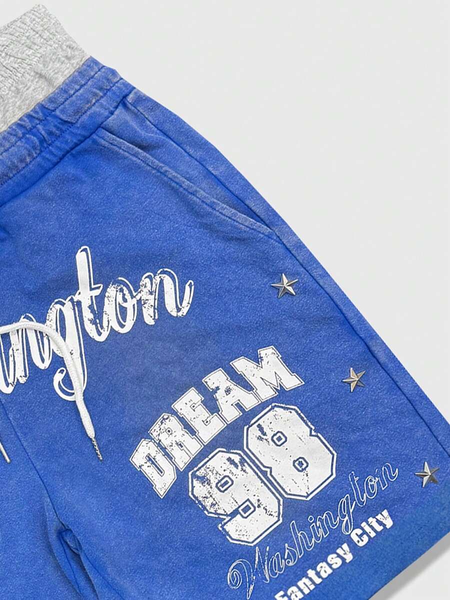 Prep Pantaloncini casual da uomo con stampa a lettera, vita con coulisse e tasche