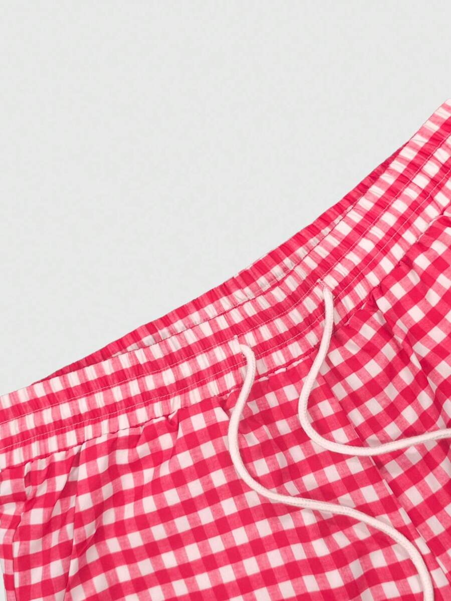 Casual Pantaloncini da uomo con vita regolabile e stampa a quadri, estivi