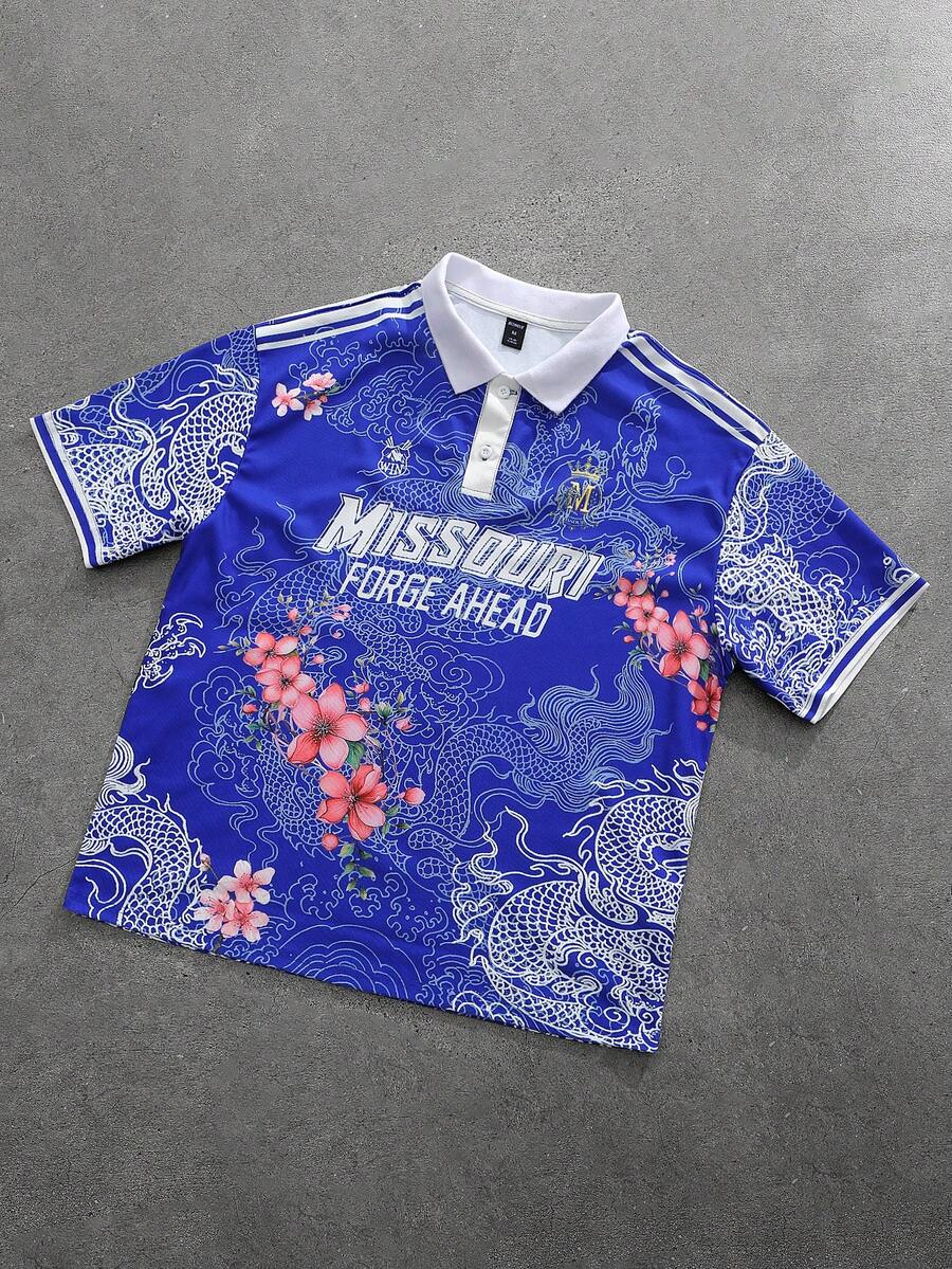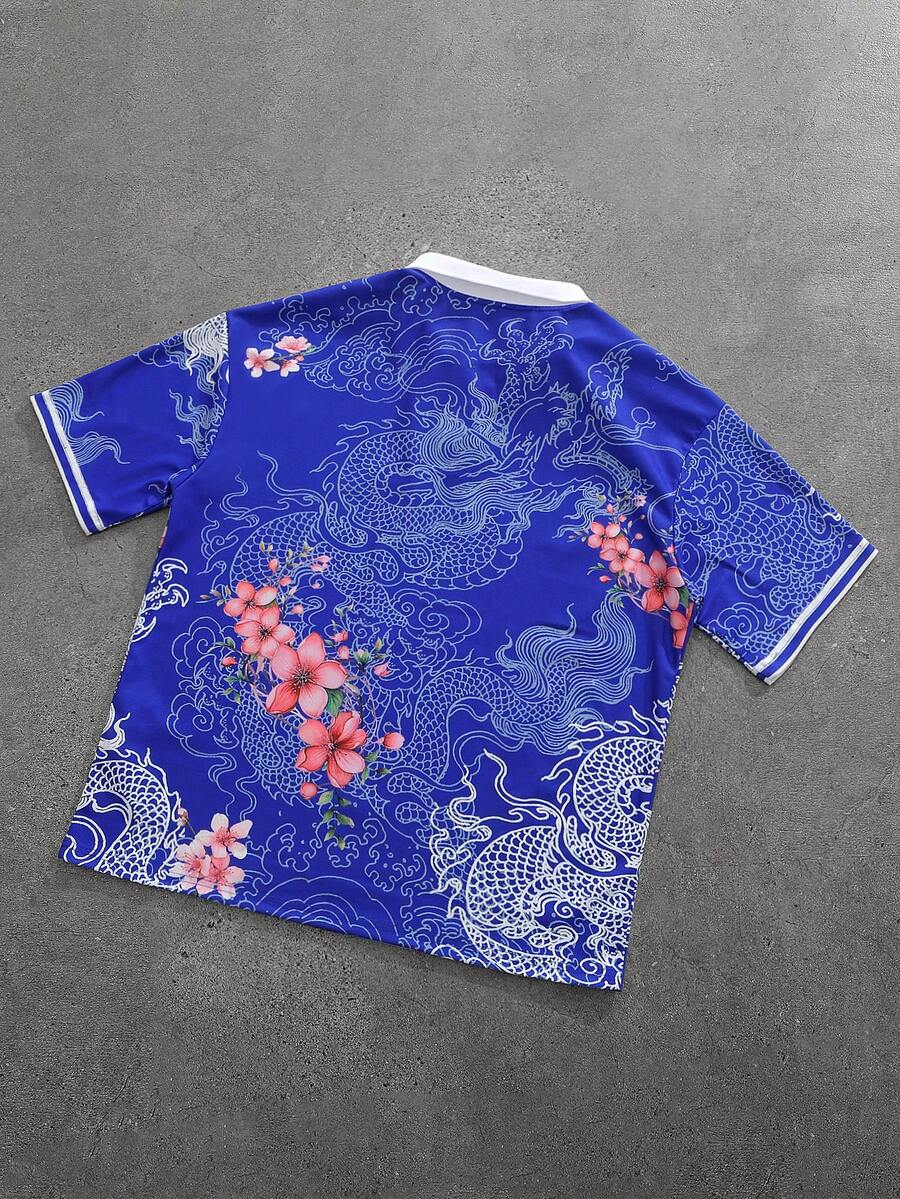 Prep Polo da uomo con stampa drago, adatta per uso quotidiano, primavera/estate
