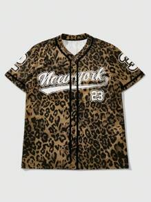 Prep Camicia casual estiva da uomo con stampa del logo e motivo leopardato a maniche corte