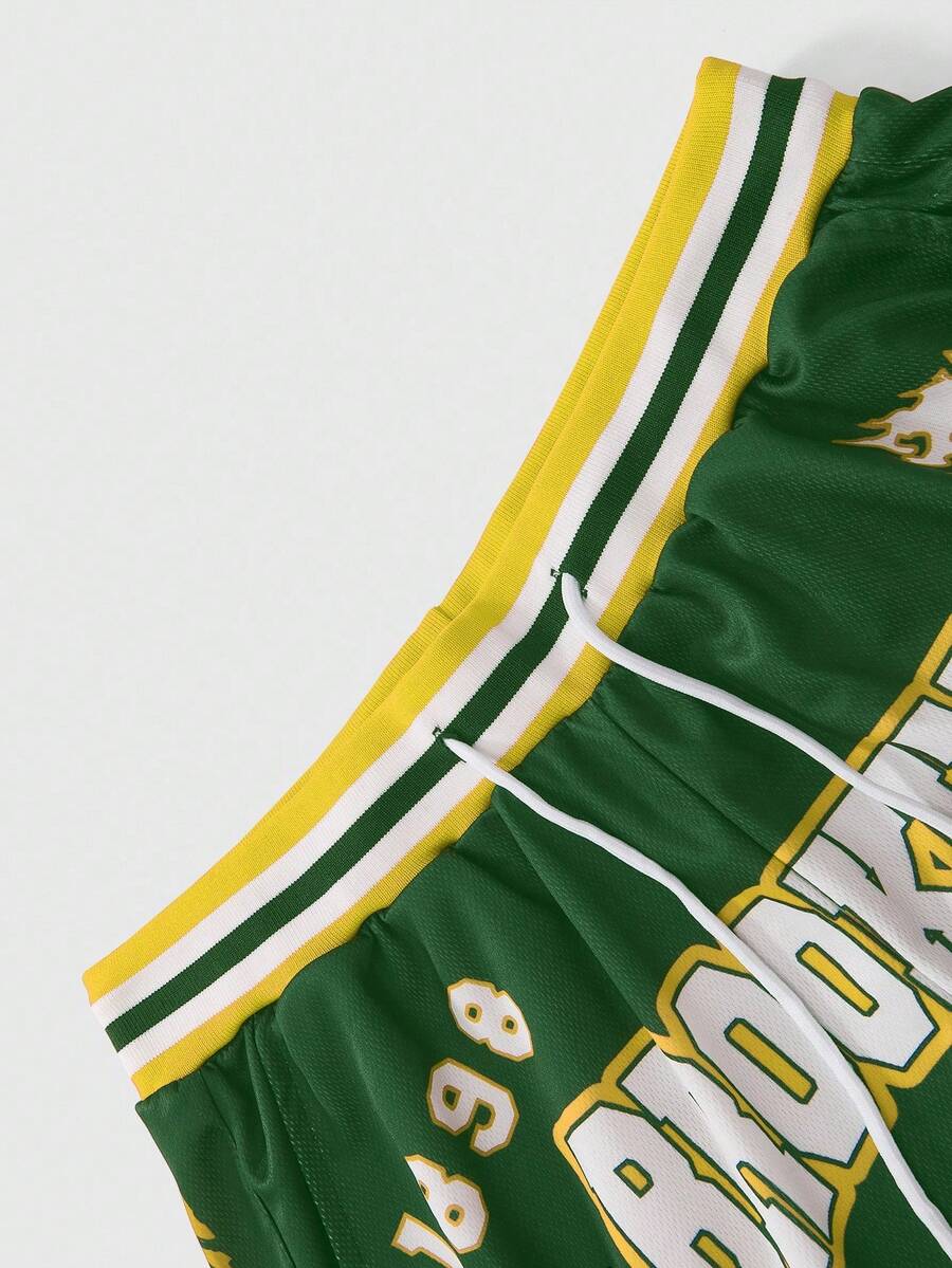 Prep Pantaloncini estivi casual da uomo con stampa a blocchi di colore, righe e lettere
