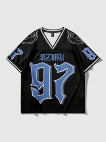 Prep Maglietta casual in jersey con scollo a V, stampa numerica, vestibilità morbida, maniche corte per l uomo , Maglie da baseball