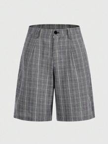 Prep Pantaloncini casual da uomo versatili con stampa a quadri e bottoni