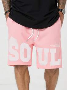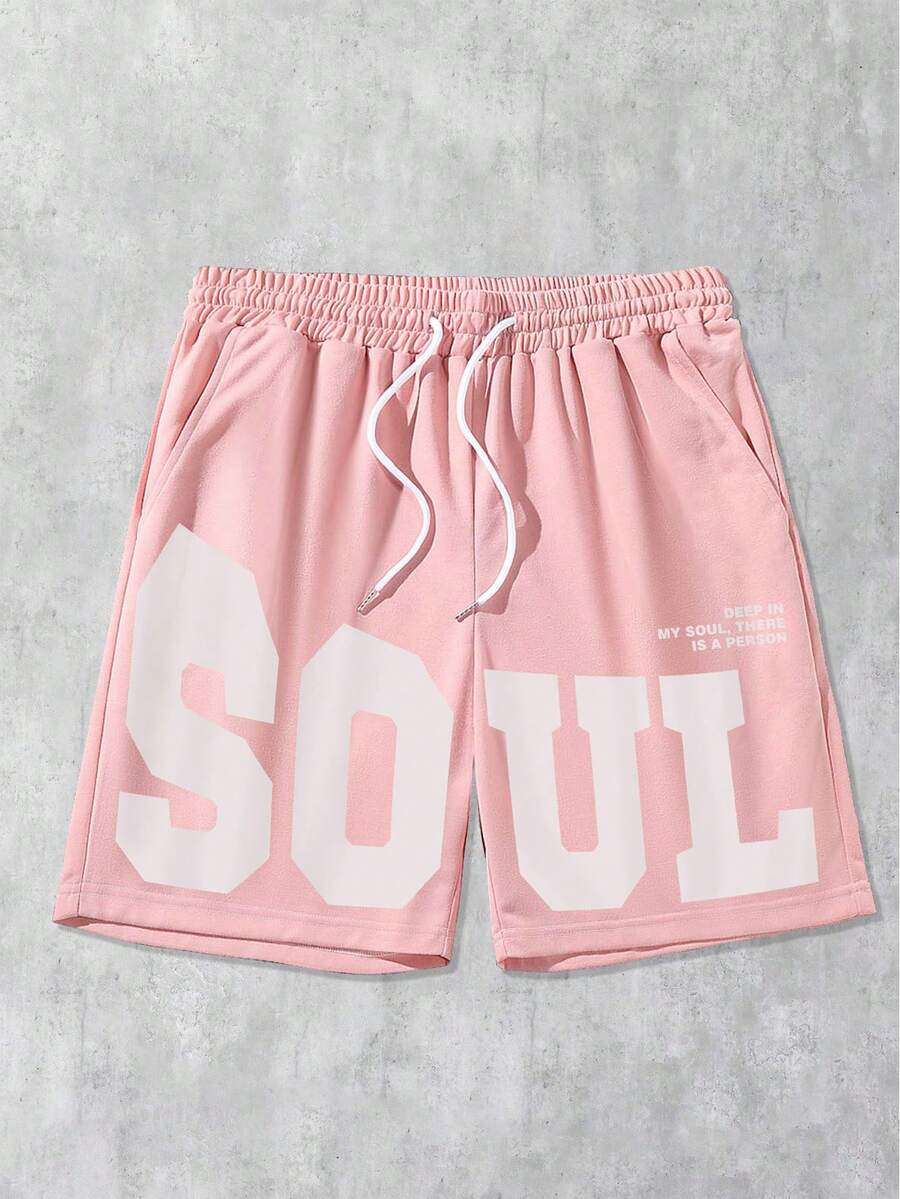 Street Life Shorts estivi da uomo estivi e sportivi, casual e comodi, con design stampato in inglese, di colore rosa acceso