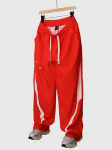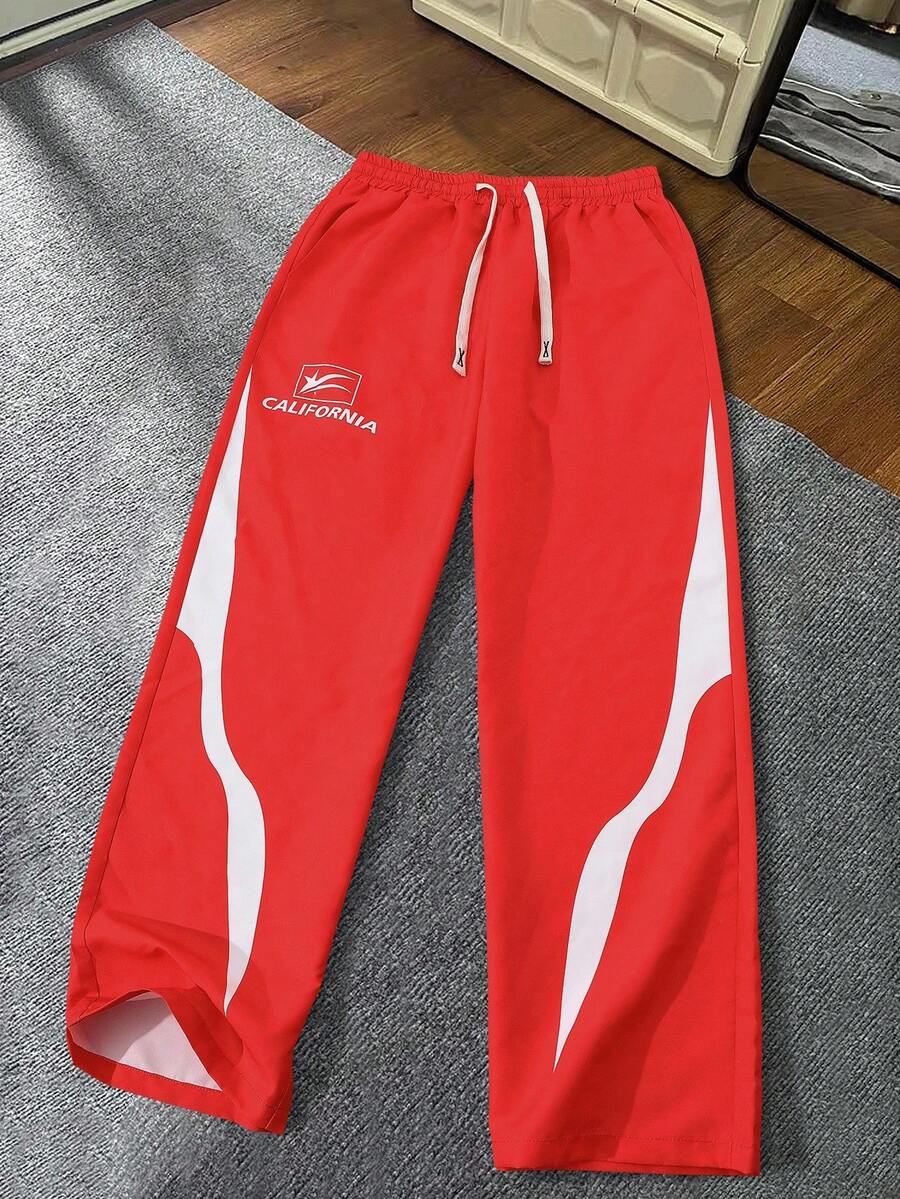 Prep Pantaloni con gamba dritta unisex con stampa grafica in inglese, stile street, per l'autunno