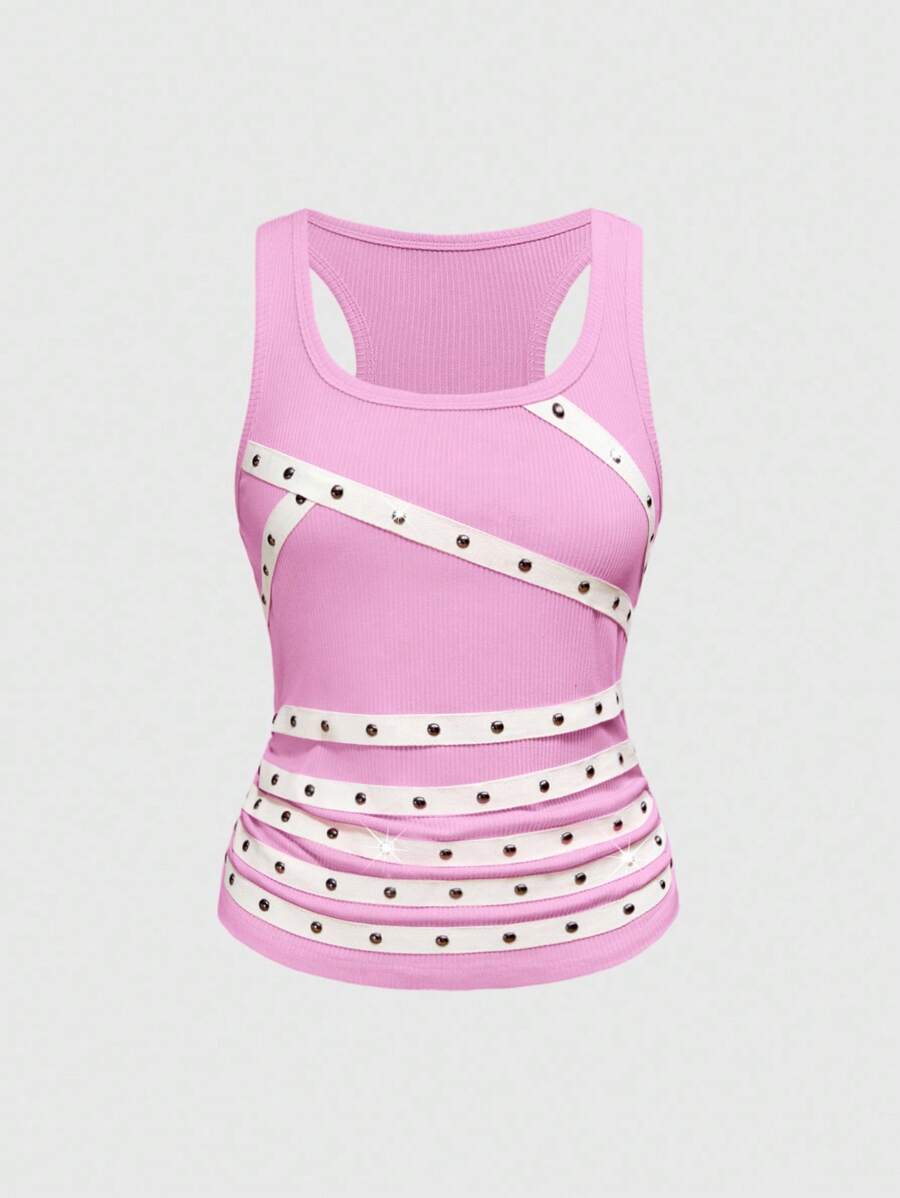 Grunge Punk Top corto e gilet senza maniche con borchie, stile punk rock, sexy con spalline borchiate, stile college estivo, taglie forti