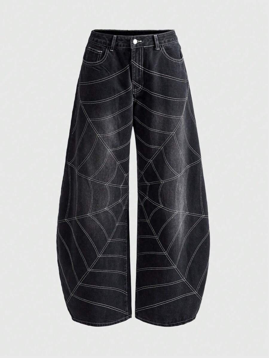 Grunge Punk Jeans larghi da donna con design a contrasto a trama di ragnatela, stile punk street