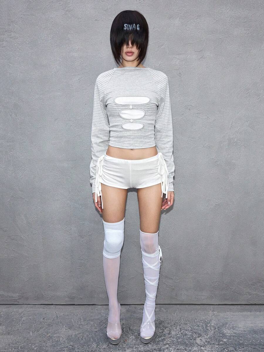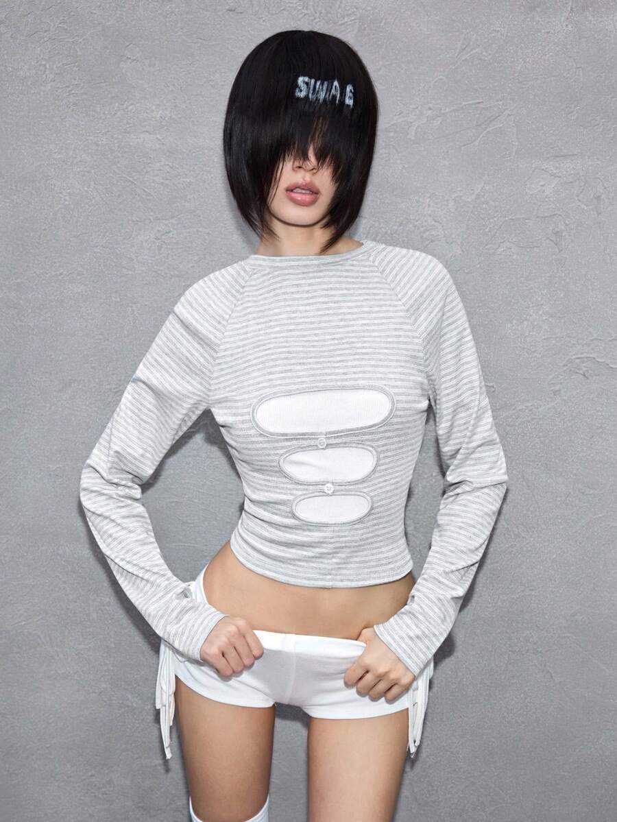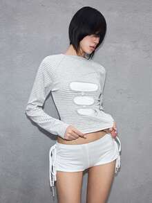 ROMWE Avant Top aderente minimalista decostruito con perline per donna