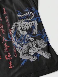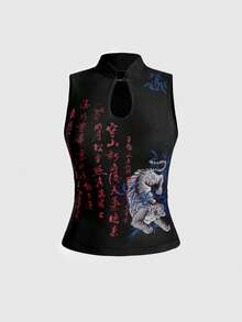 ROMWE Avant Canotta da donna con stampa di stile cinese raffigurante tigre e foglie di bambù