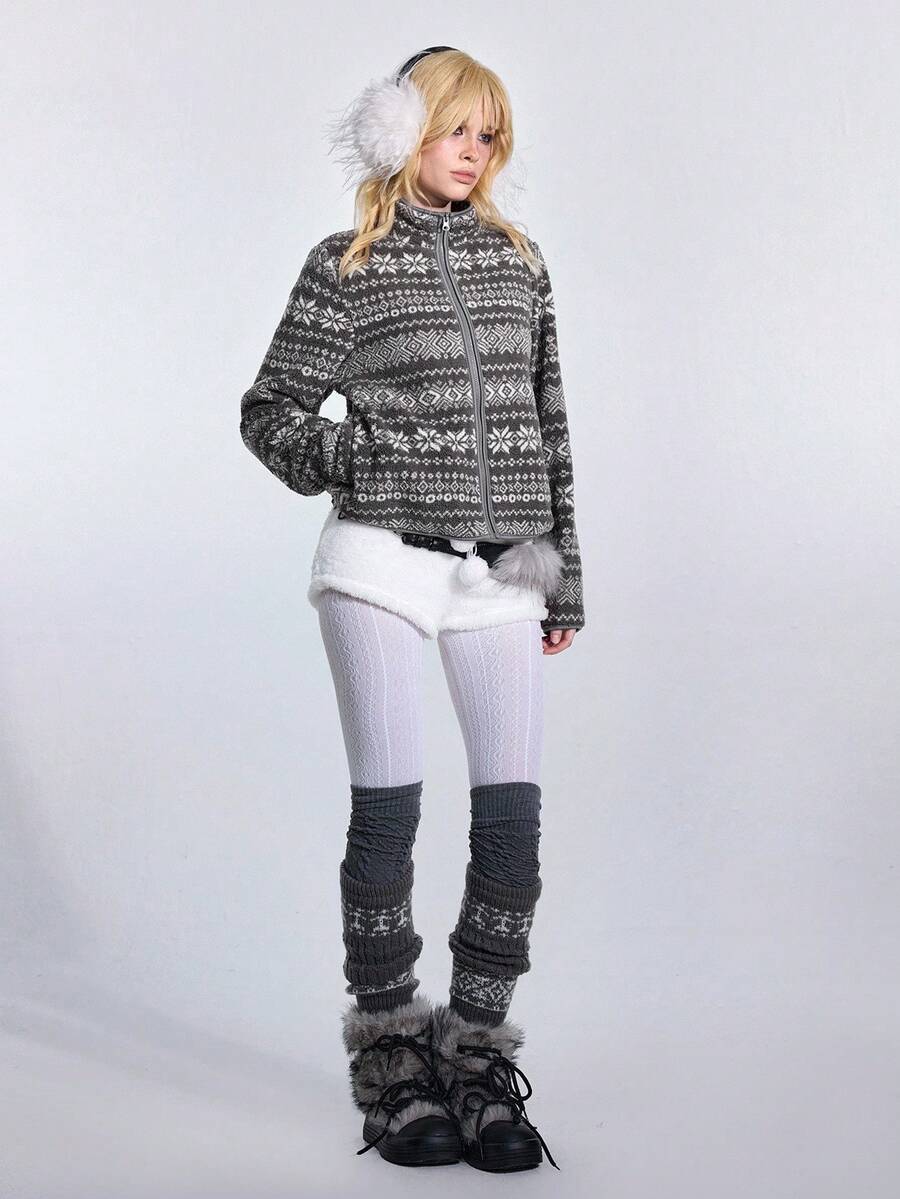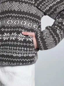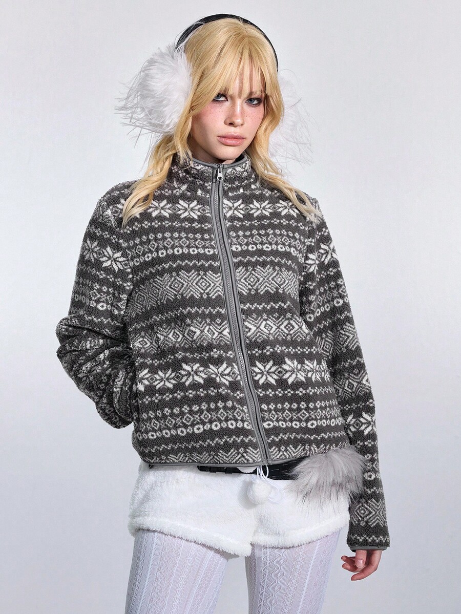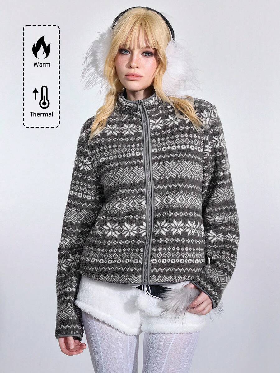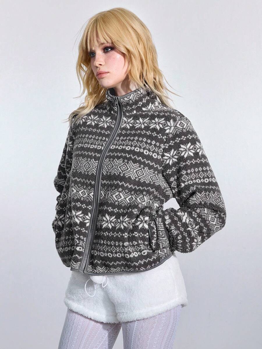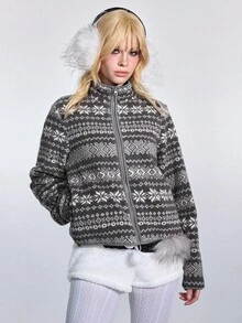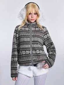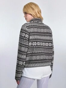 ROMWE Avant Giacca casual versatile da donna con maniche lunghe in pile jacquard stile fairisle