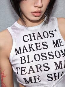 ROMWE Avant Canotta da donna alla moda con stampa in inglese e design traforato