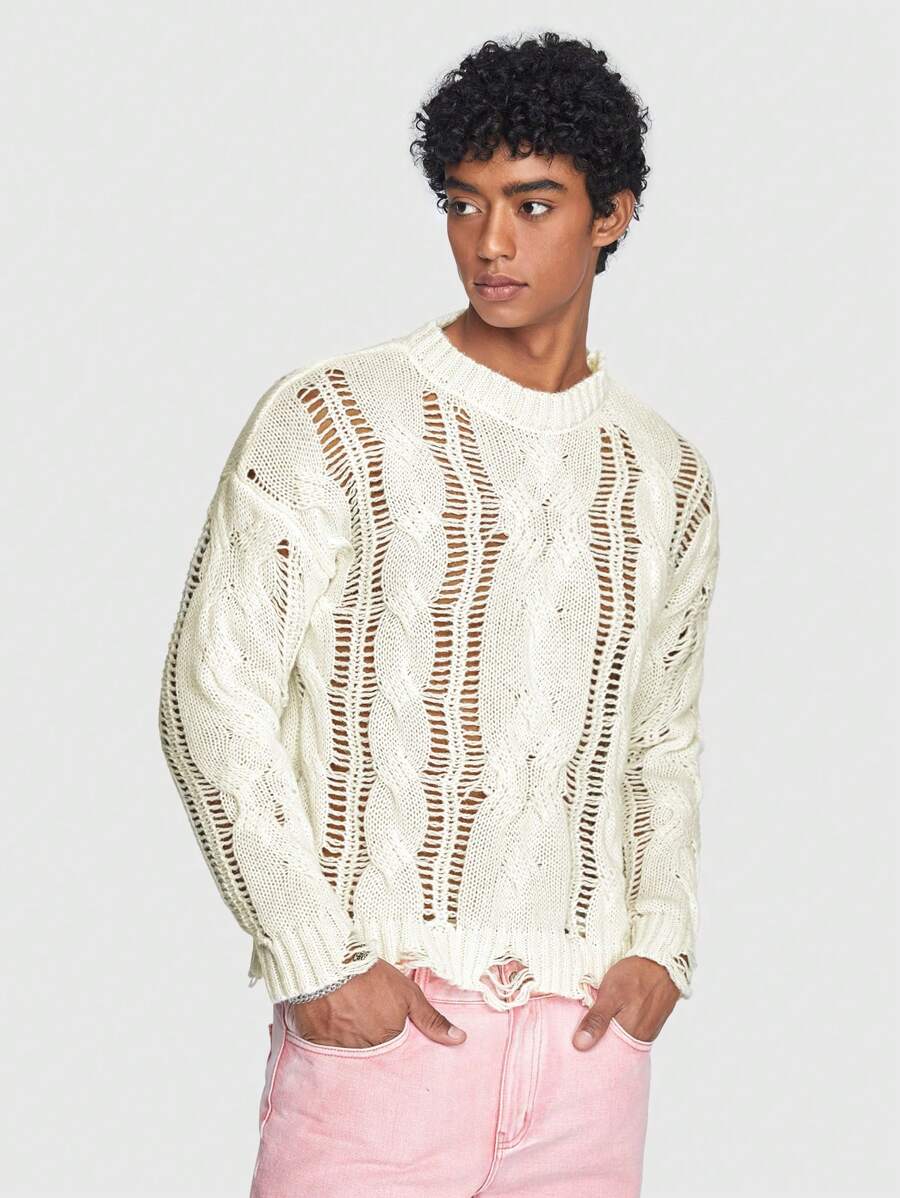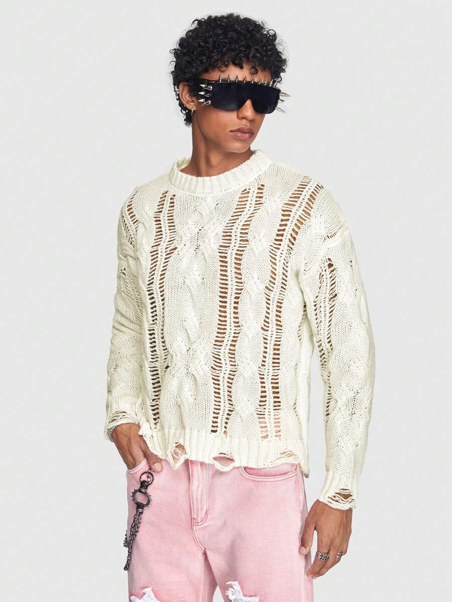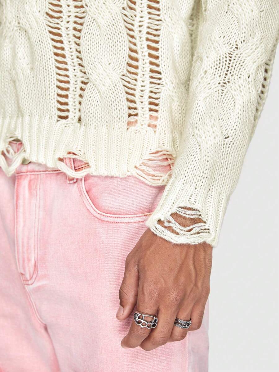 ROMWE Avant Ragazzi Maglione invecchiato monocolore scavato