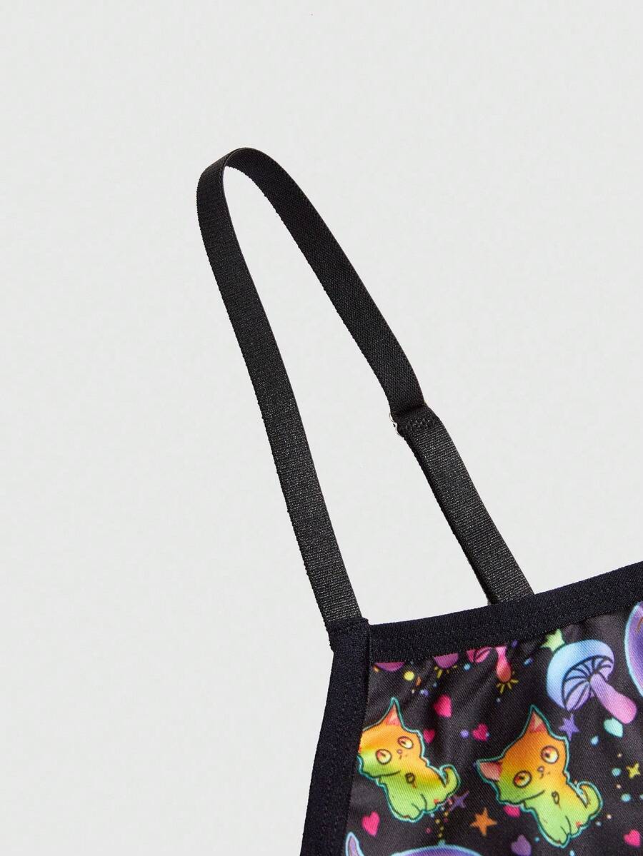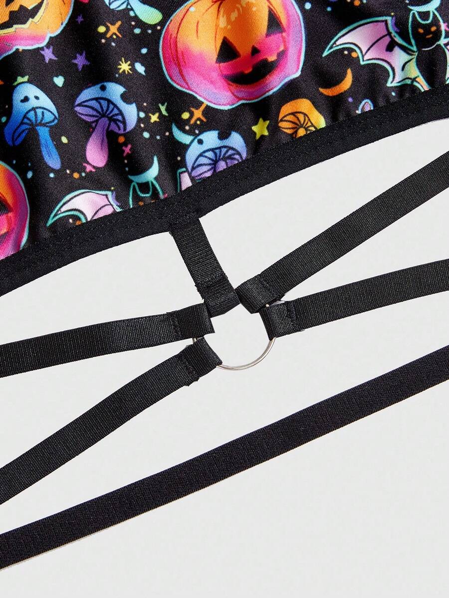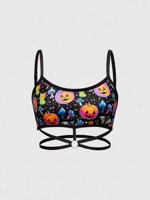 ROMWE Avant Reggiseno senza fili da donna con stampa di zucche iridescenti, pipistrelli e funghi, a tema Ognissanti