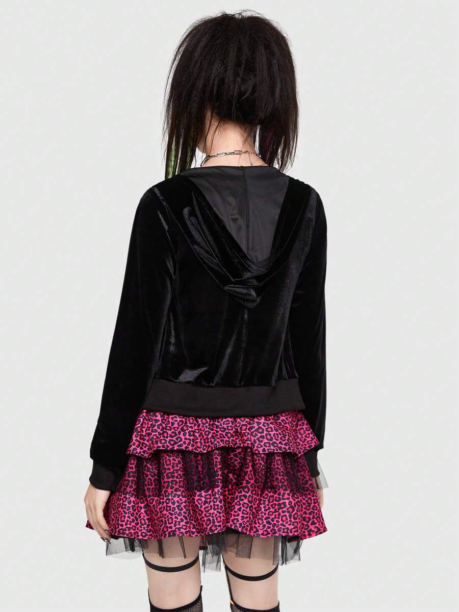 ROMWE Avant Giacche lettere con strass con zip di velluto