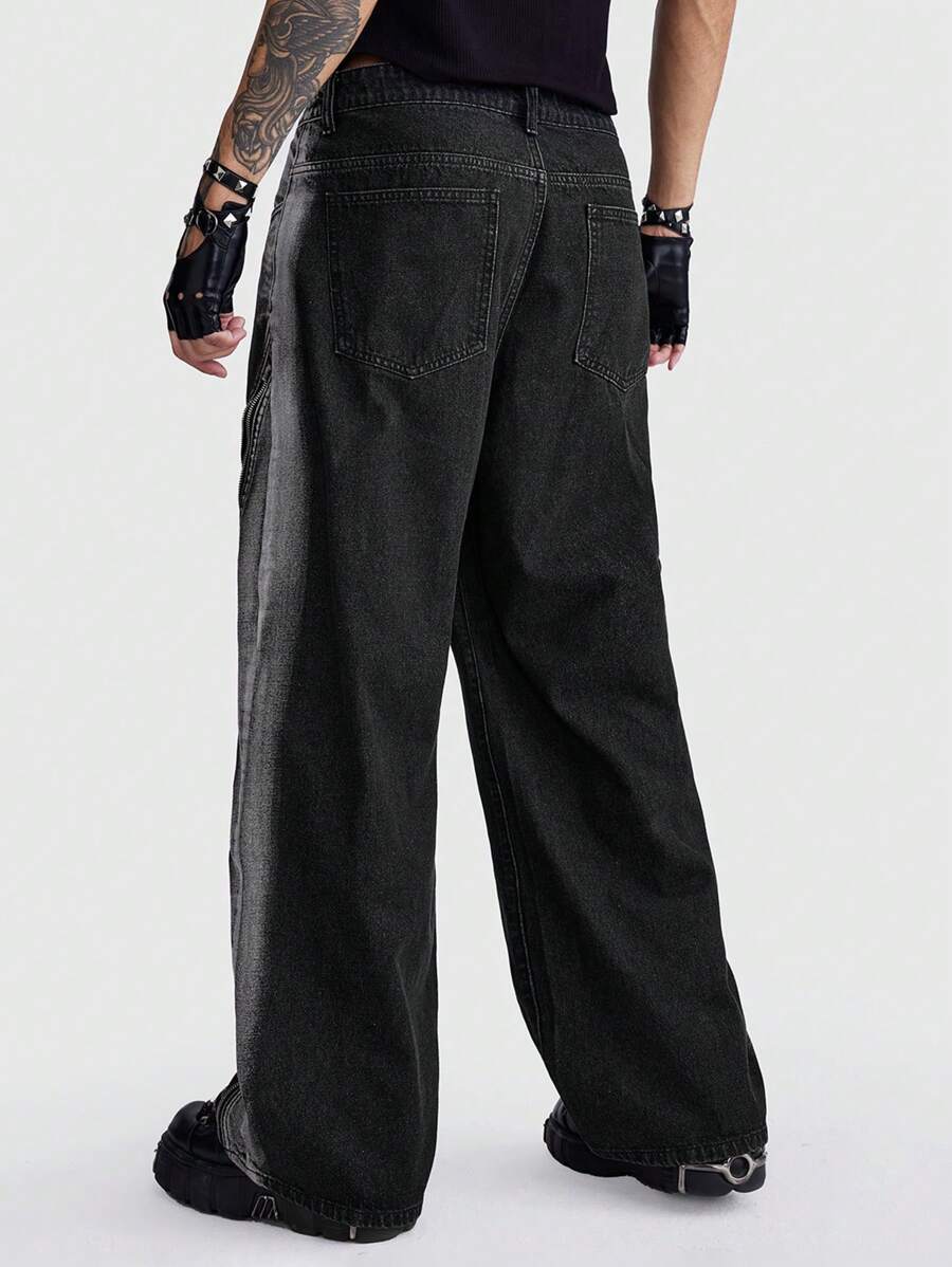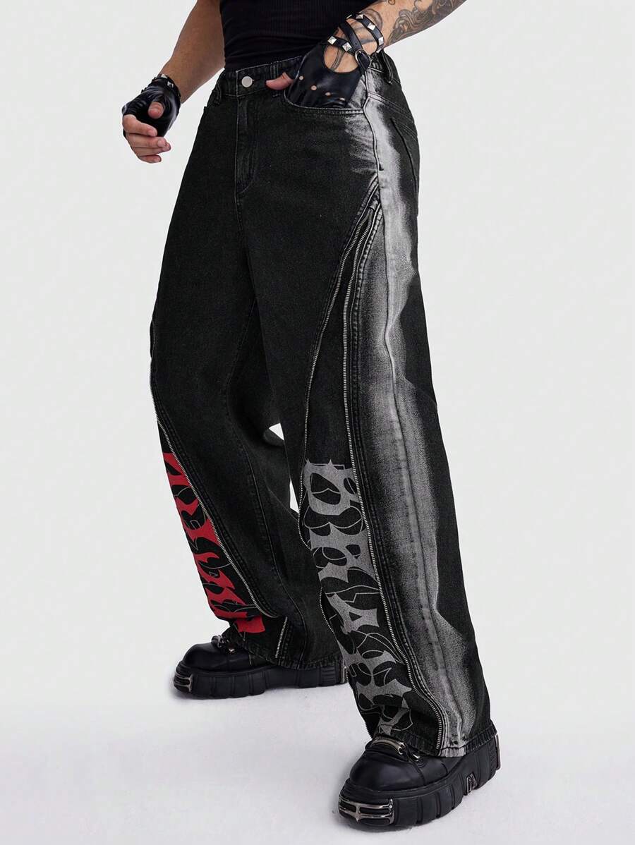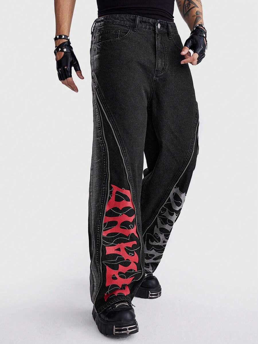 ROMWE Avant Jeans baggy diritti lavati con stampa a lettere casual da uomo